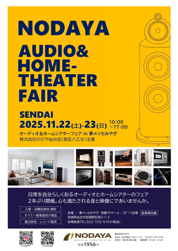 11月22日(土)、11月23日(日)に【オーディオ&ホームシアターフェアin 夢メッセみやぎ】に出展いたします。