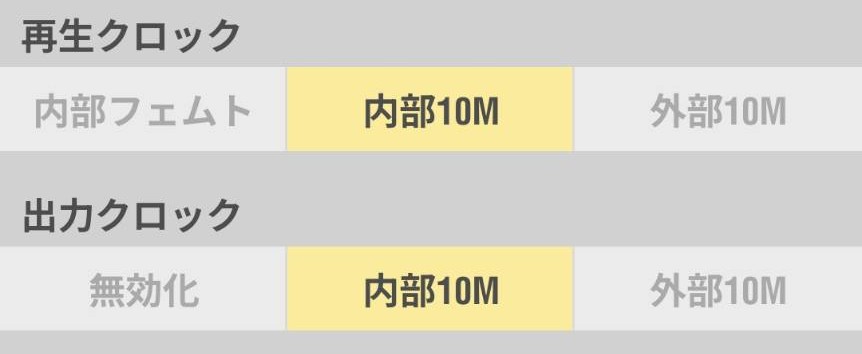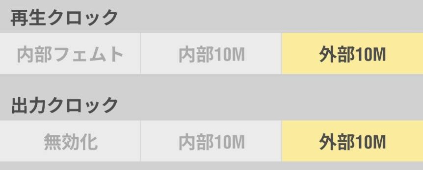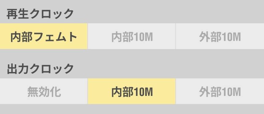外部クロックと接続後、下記を参考に再生クロック・出力クロックを切り替えてください。