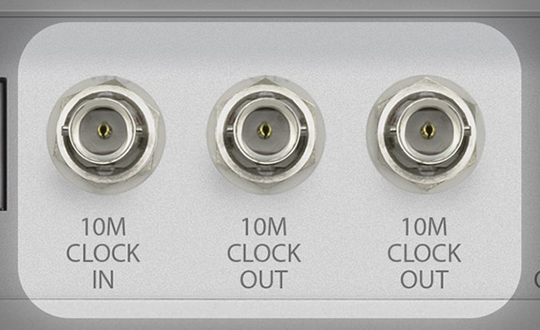 使用するクロックの出力端子と10M CLOCK IN端子をBNCケーブルで接続してください。