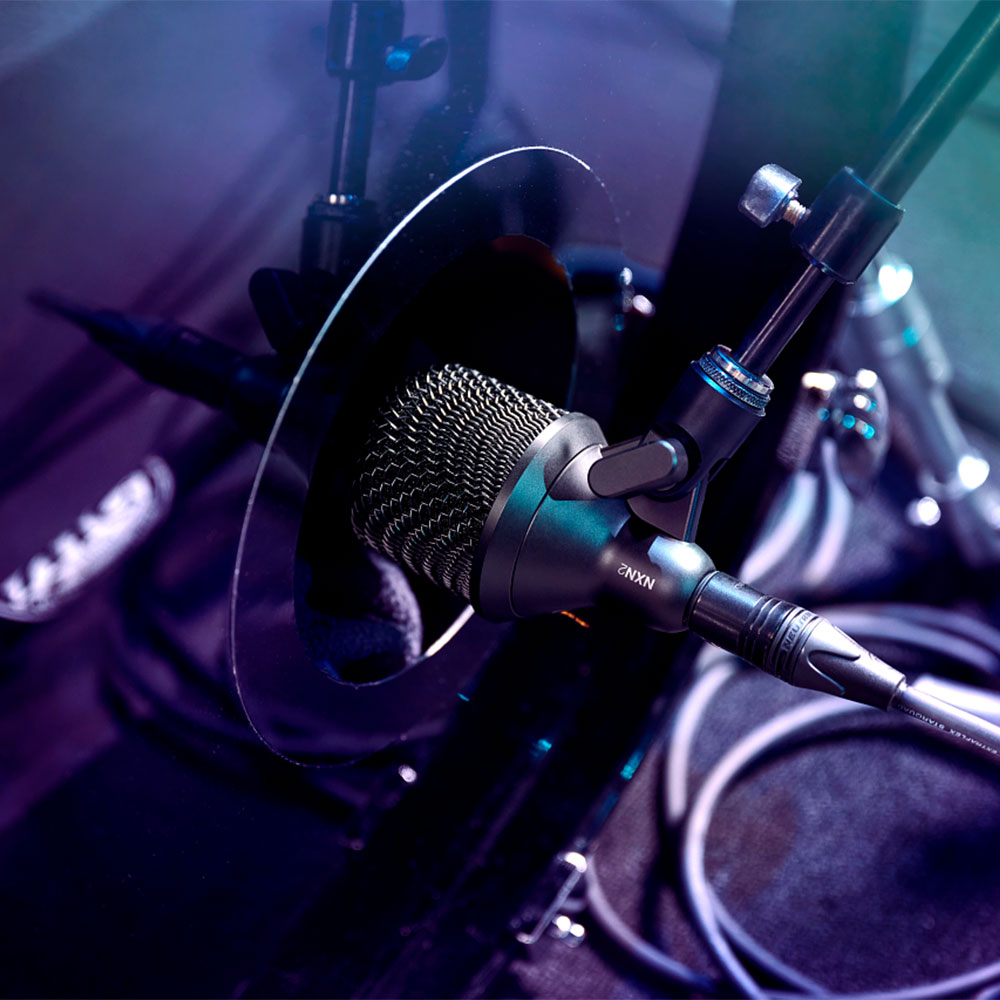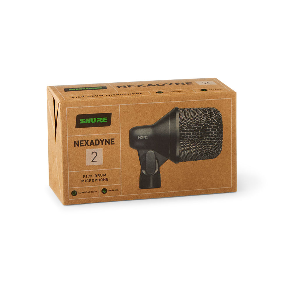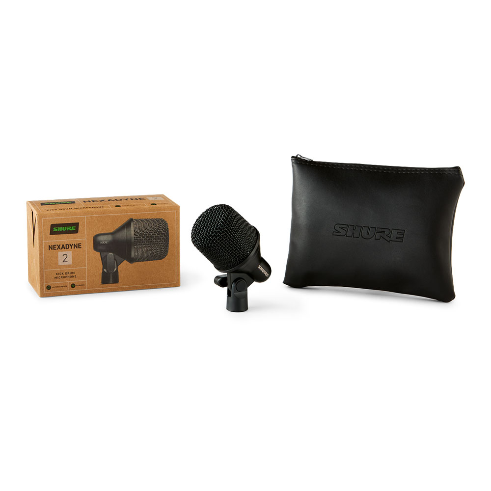 Nexadyne™ 2 キックドラムマイクロホンは、プロフェッショナルなライブパフォーマンス用に設計されたスーパーカーディオイド・ダイナミックマイクロホンです。特許取得済みのShure Revonic™デュアルエンジントランスデューサーテクノロジーを搭載し、キックドラムやその他の低音楽器の周波数帯域を最大限に引き出すように特別に設計されています。細部まで精密に設計された2つのトランスデューサーが連携することで、最適なオーディオパフォーマンスを実現します。
