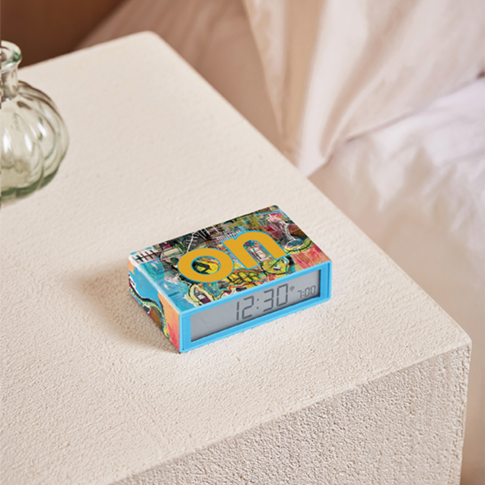 使い方は驚くほどシンプルで、ON 側に裏返すとアラームが作動し、OFF 側に戻すと解除されます。キース・へリング、ジャン=ミシェル・バスキアの世界観からインスピレーションを得た豊富なカラーバリエーションで展開される Flip+ は、スタイルと実用性を兼ね備えた理想的なアイテムです。