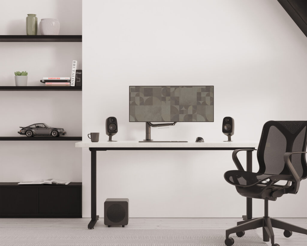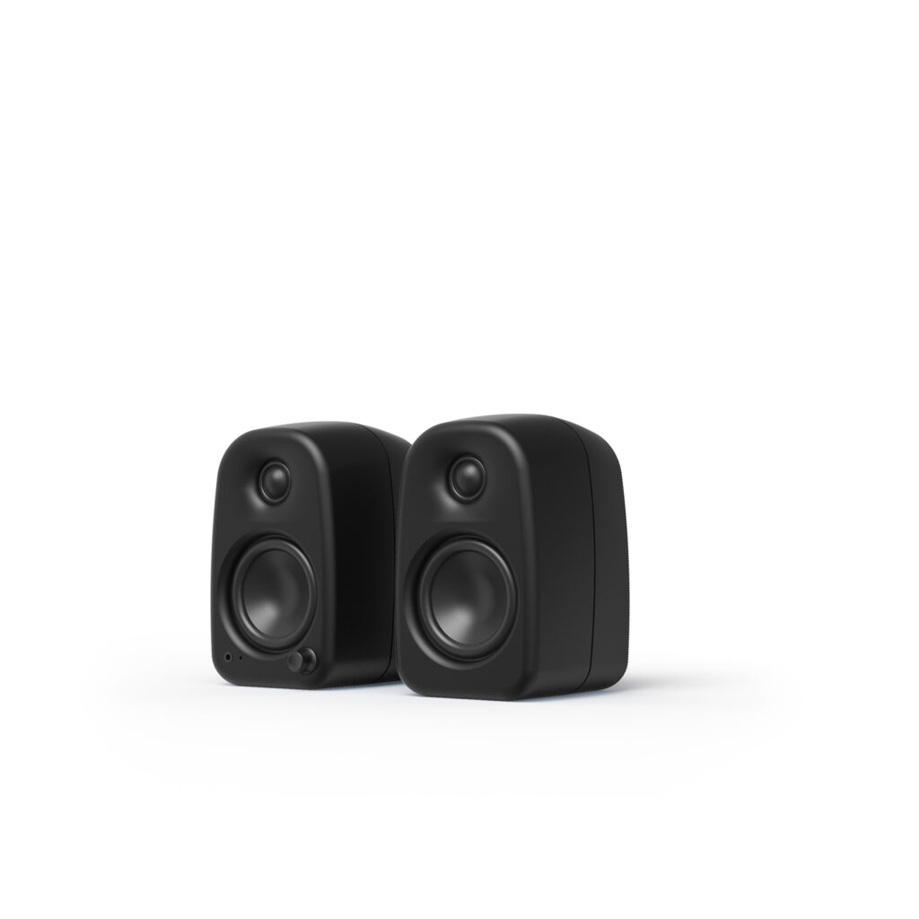 設置場所を選ばないコンパクトな遊び心のあるフォルムと、誰もが迷わない直感的な操作性を両立した、コンパクトデスクトップスピーカー。